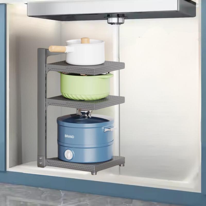 Подставка-полка для кастрюль кухонная трехуровневая из углеродистой стали с тремя съёмными...