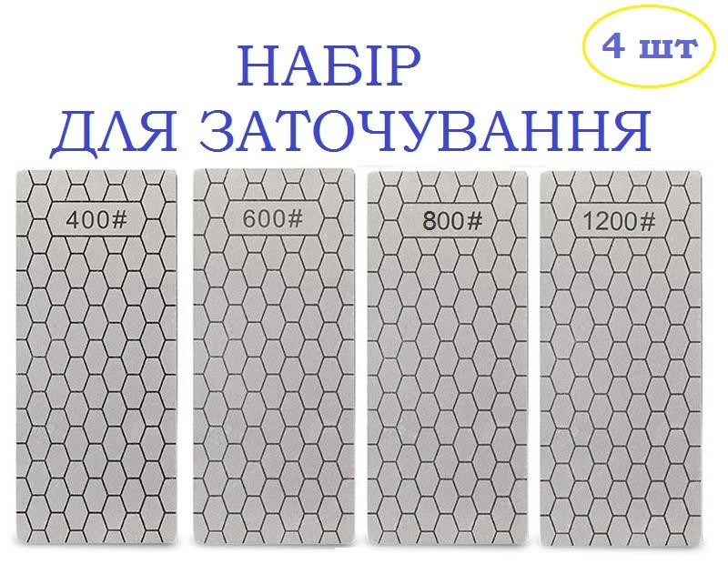 Набор односторонних алмазных точильных камней брусков для ножей 4 штуки 400/600/800/1200 g...