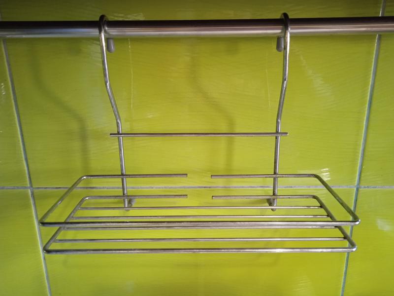 Подвесная полка органайзер на кухню к рейлингу Материал: металл Длинна 26 см Ширина 14 см Ширина бортика 10 см Высота 21 см Высота бортика 2,5 см