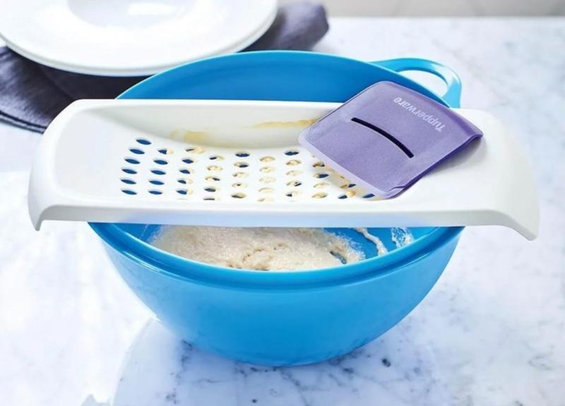 Терка "Макарена" (Смарт) Tupperware Ідеальне і повноцінне рішення для приготування галушок,торта мурашника. Розмір: 33см*13см Перевага: * Безліч отворів однакового діаметра допоможуть швидко приготувати велику кількість акуратних рівних галушок. * Спеціальний скребок, що входить в комплект до тертці, швидко і м'яко протре тісто. Спеціальні бортики на тертці виключають проливання тесту в каструлю. * Скребок має спеціальний проріз для кріплення на нижній частині основи терки. Це виключає втрату скребка при зберіганні. * Ніжки терки у вигляді ступенів створені спеціально для того, щоб терка стійко розміщувалася на каструлях різних діаметрів. Технічна інформація Тертку і скребок можна мити в посудомийній машині. Температурний діапазон до + 120 ° С.