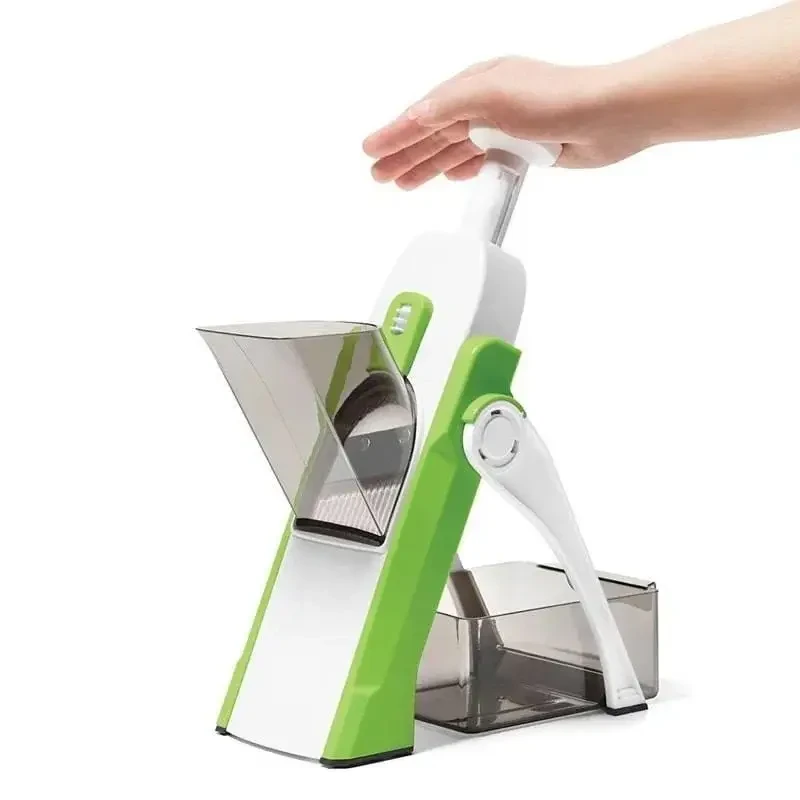 На корпусе мультислайсера расположены два рычага для выбора типа резьбы и для настройки толщины от 0.5 мм до 8 мм (шаг составляет 0.2 мм). Блюда получатся не только вкусными, но и красиво оформленными. Преимущества ▪ В качестве основного материала – надежный пластик без добавления вредного бисфенола А. ▪ Мультислайсер и комплектующие подходят для мытья в посудомоечной машине ▪ Быстрая нарезка без труда – благодаря уникальной пружинной системе ручка после нажатия мгновенно поднимается вверх, не требуя затрат ▪ Многофункциональное и универсальное устройство – нарезка продуктов кубиками, кружками, соломкой, брусочками разной толщины и длины ▪ Абсолютная безопасность конструкции ▪ Встроенная режущая система содержит три высококачественных лезвия из нержавеющей стали, которые никогда не затупляются ▪ Отличный результат нарезки – каждый раз у вас будут получаться идеально ровные кусочки ▪ Компактный дизайн для хранения ▪ Устойчивость за счет резиновых ножек и уникальной конструкции под «пирамиду» ▪ Два рычага для выбора типа нарезки и для настройки толщины от 0,5 мм до 8 мм (шаг составляет 0.2 мм)