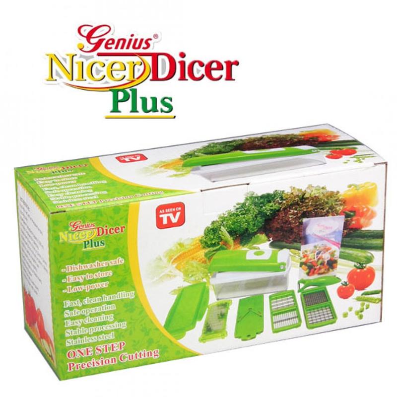 Найсер Дайсер Плюс (Nicer Dicer Plus) - это многофункциональный прибор для измельчения и нарезания продуктов, который станет для Вас просто незаменимым помощником на кухне. Овощерезка Nicer Dicer Plus абсолютно безопасен и прост в роботе. Теперь вы можете готовить вместе со своими детками, а ведь они так любят помогать на кухне!!! Прибор для нарезания продуктов Nicer Dicer Plus это усовершенствованная модель классического Найсер Дайсер Измельчитель продуктов Nicer Dicer Plus станет Вашим помощником на кухне, ускоряя процесс приготовления пищи. Приготовление пищи станет для вас простой забавой. Вы с легкостью можете измельчить продукты самими разнообразными способами: средние и большие кубики; мелкая, средняя и большая соломка; толстая и тонкая шинковка, мелкая и крупная нарезка. Теперь Вам не нужно тратить много времени для нарезания салатов! С Nicer Dicer Plus готовить просто, легко и быстро. Новый Найсер Дайсер Плюс заменит Вам множество предметов на кухне и при этом занимая совсем не много места. Вы можете пользоваться им каждый день,ведь он очень просто моется, нужно просто ополоснуть его под водой. Купив Nicer Dicer Plus Вы избавите себя от громоздких комбайнов, которые выполняют те же функции, что и новый Найсер Дайсер Плюс. Контейнер для овощей прозрачный, что позволяет Вам контролировать его заполнение и тип измельчения который Вы выбрали. Подавать блюдо можно прямо в контейнере, после окончания трапезы, просто закрыть герметической крышкой и поместить в холодильник. Найсер Дайсер Плюс (Nicer Dicer Plus) прослужит Вам долго и верно, ведь все лезвия этого прибора заточены лазером, что помогает им постоянно оставаться острыми. Комплектация универсального прибора для нарезания продуктов Найсер Дайсер Плюс : режущая база; прозрачный контейнер; съемная верхняя часть с кнопкой для очистки; герметичная крышка; нож для удаления кожуры; вставной режущий толкатель; лезвие 18х18 мм, 6х36 мм; клиновидные лезвия; лезвие для нарезания кольцами и шинковки; терка с защитной крышкой.