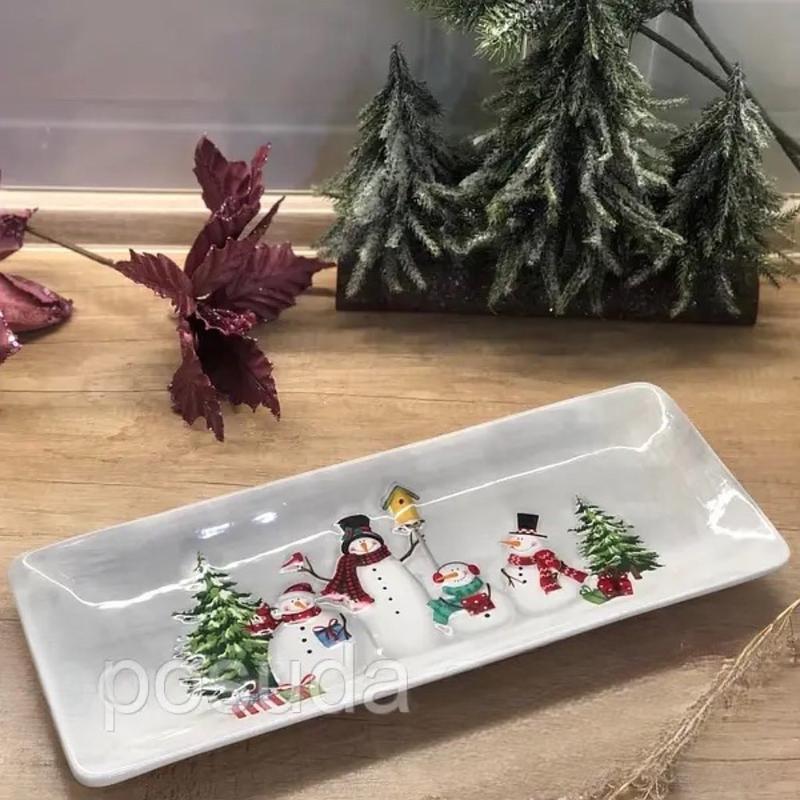 Новогодние керамические тарелки веселые снеговики, 40 * 16см