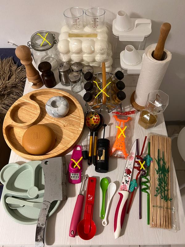 -Тесак 27см - 260. -Металокерамічний ніж 33см- 50. -Ложка пластикова для морозива Ласунка 28 -3 сільнички вис 8.5 діам 5 по 35. 1 сільниця більша - 45. -Тарілка з виделкою і ложкою, пластик. 140грн. -Тарілка Tupperware складна 700 ml 160 грн. -Ложки, дерево, 85 грн/шт. -Шпажки бамбук 20 грн. Привезено з Даніі: -Контейнери 1800мл- 260 грн, 1100мл- 185 грн. -Серветниці пластикові, бульбашки нова-315 грн, б/в -240. -Підсвічник мармур 200 грн. -Пісочний годинник Ikea Tillsyn 2.5хв вис 16см - 800 грн. -Бургер бокс діам 11.5, вис 4.5. 40. -Пробка для вина вакуумна висота 11см. 180 грн. -Млин дерево вис 20 см 125 грн. -Сільниця дерево вис 12см 85. -Менажниця бамбук, діам 31 см. 200 грн. -Тримач для рушників, дерево Scanwood Poland 80. -Ніж для овочів Rostfrei 140.