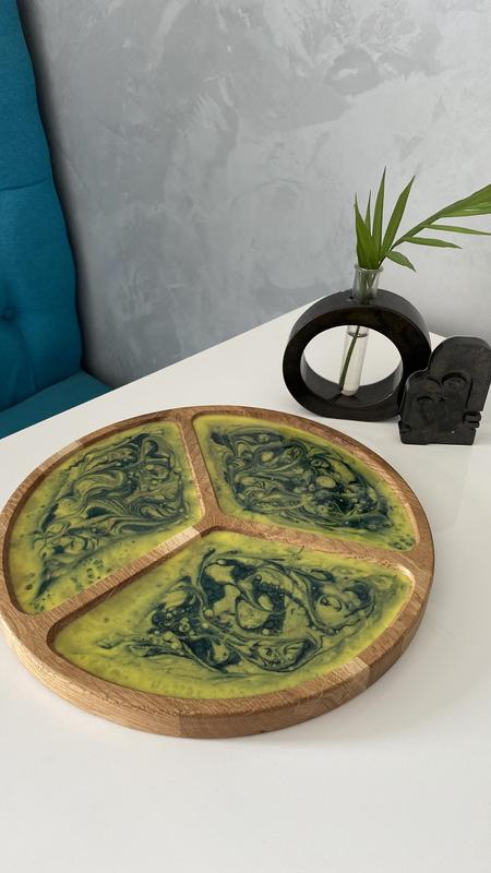 Менажница из эпоксидной смолы для сервировки вашего стола. Использовать под холодные закуски и нарезку, суши. Оборотную сторону использовать для нарезки.