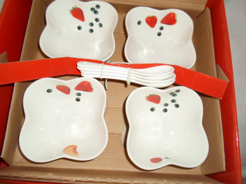 Новый набор из 4 фарфоровых салатников с 4 ложечками