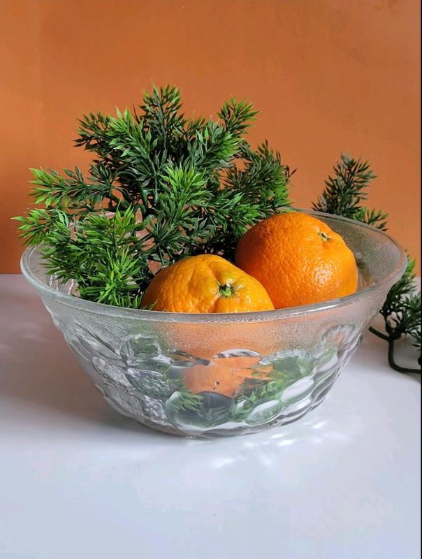 Винтажная ваза для фруктов и ягод из фактурного стекла Объем 1.8 л Диаметр 21.5 см, высота 9 см Изготовлен в Италии в 80-х годах Стан замечательный