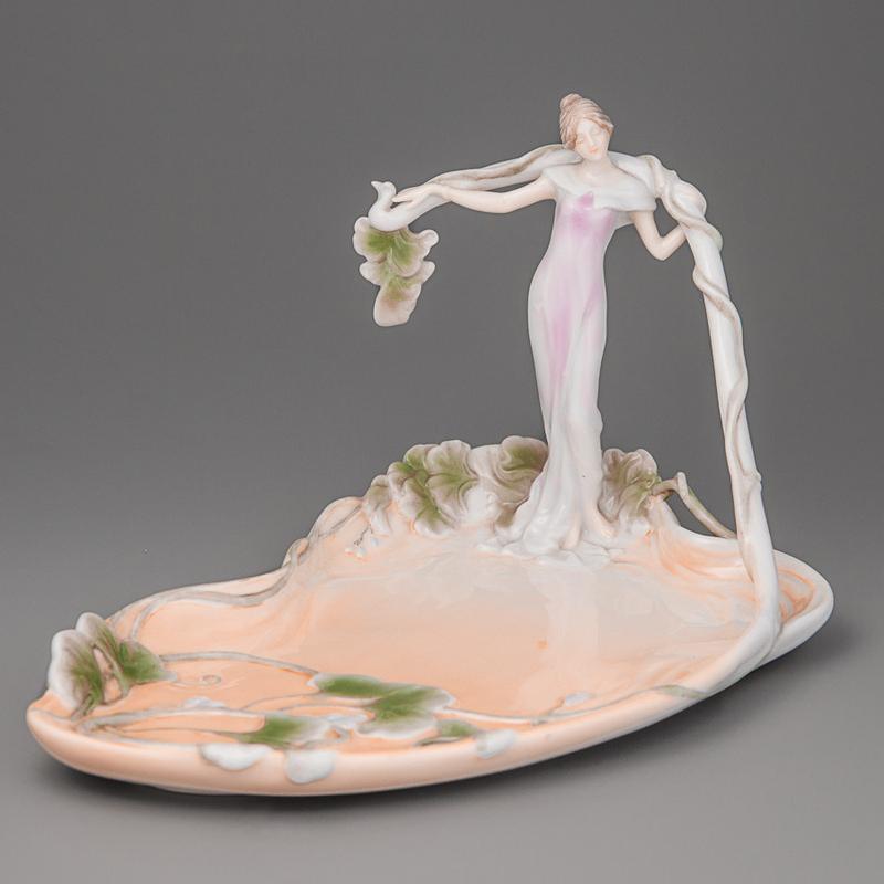 Блюдо "Девушка в листьях" Причина уценки- нет подарочной коробки. Размер 23 х 24 см Высота 15 см. Материал ― фарфор. Фирма Unikorn Studio.