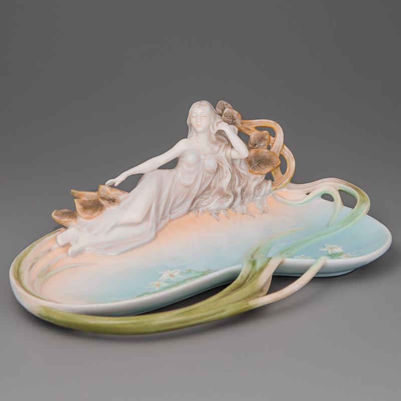 Блюдо декоративное фарфоровое unikorn studio девушка в листьях 24х26 см 20019