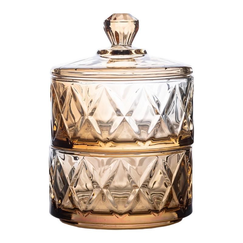 Конфетница стеклянная с крышкой двухуровневая ø 10 см ваза конфетница коричневая