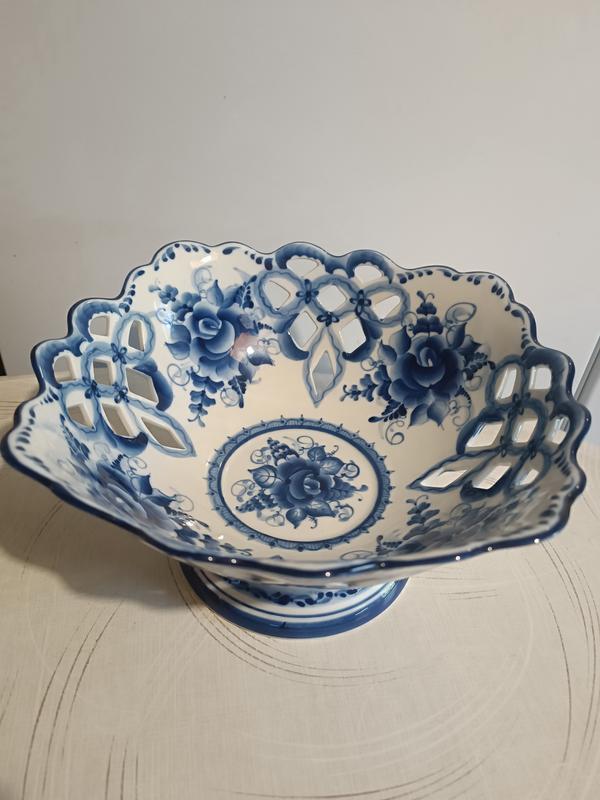 Шикарная ваза для фруктов Гжель в идеальном состоянии