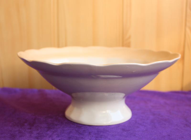 Фарфоровая фруктовница 90-х роки Коростинь второй сорт без росписи, позолоты и других отделок. Без дефектов. Цвет белый с люстровым кантом по краю. Диаметр 23см. висота 9см.