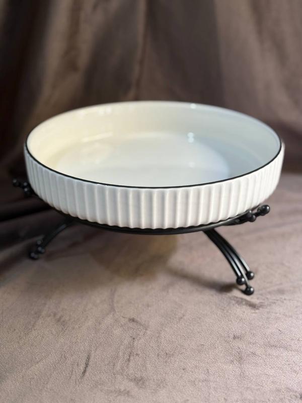 Фруктовница yiwu lb-1571b фарфоровая на металлической подставке 22.5 см белый с черный