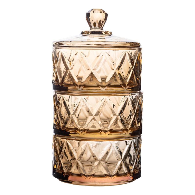 Трехуровневая конфетница из толстого стекла - это изысканный элемент декора, который станет практичным дополнением к вашему столу. Ее изящный дизайн и прозрачность напоминают настоящий хрусталь, создавая атмосферу элегантности. Благодаря трем уровням, конфетница обеспечивает достаточно места для хранения сладостей, фруктов или других лакомств, организуя пространство с максимальным комфортом. Основные характеристики: Материал: стекло; Диаметр: 10 см; Высота: 20 см; Особенность: наличие крышки для сохранения свежести продуктов; Назначение: Для хранения конфет, фруктов, десертов и других лакомств. Изделие имеет компактные размеры, позволяющие использовать его даже в небольших помещениях. С плотно закрывающей верхний уровень крышкой конфета не только эстетическая, но и функциональная - она сохраняет свежесть продуктов и защищает их от пыли. Ее изящные детали и текстурированная поверхность придают особый шарм, делая ее идеальным подарком для близких. Эта трехуровневая конструкция легко вписывается в любой интерьер - от классического до современного. Ее можно использовать как элемент сервировки праздничного стола или для ежедневного обихода. Благодаря своей прочности, толстое стекло обеспечивает длительный срок службы, гарантируя, что конфетница будет оставаться стильным акцентом вашего дома на долгие годы.
