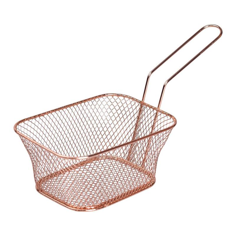 Стильная сервировочная корзина для фри и снеков станет незаменимым аксессуаром для оригинальной подачи любимых закусок. Изготовлена из нержавеющей стали с гальваническим покрытием, он совмещает изысканный вид с прочностью и долговечностью. Компактный размер и удобная форма позволяют подавать картофель фри, чипсы или другие закуски. Основные характеристики: Материал: нержавеющая сталь; Размер: 14×10×6 см; Высота с ручкой: 12 см; Глубина: 6.5 см; Толщина проволоки: 0.5 мм. Корзина имеет оптимальные размеры 14×10×6 см, что делает ее универсальной как для домашнего использования, так и для заведений питания. Гальваническое покрытие защищает поверхность износа и обеспечивает устойчивость к воздействию влаги, сохраняя презентабельный вид даже после длительного использования. Благодаря легкому уходу и оригинальному дизайну эта корзина станет ярким акцентом на вашем столе, добавляя нотку современности и эстетики в сервировку блюд.