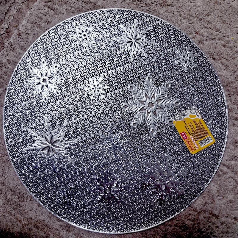 салфетка под тарелку со снежинками. есть цвет золотой и серебряный диаметр 38см есть несколько штук