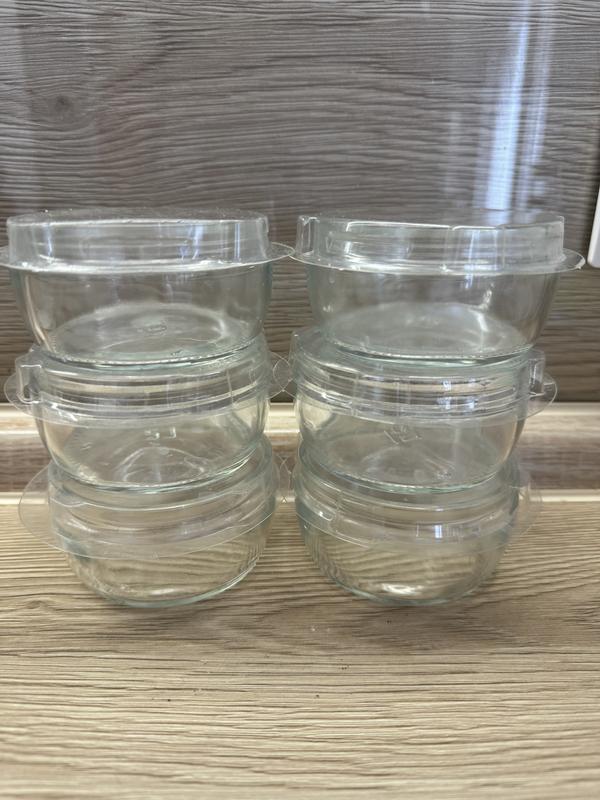Порциональные стеклянные пиалки с пластиковой крышкой Отличный вариант как для приготовления десертов, как креманка или соусника, так и для подачи масел/оливок и т.д. Объем 100 мл.