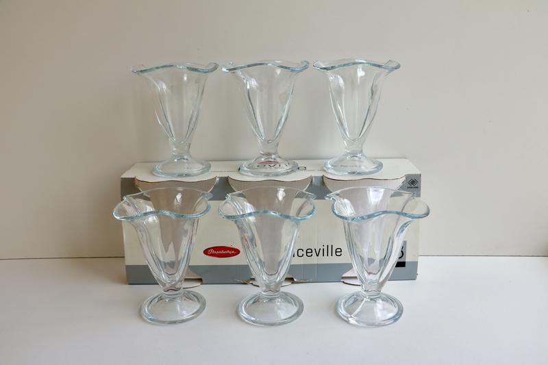 Продаю 6 креманок для мороженого и десертов от турецкого бренда Pasabahce. Состояние - новое вещи, в пользовании были 2 раза. Никаких нюансов! Есть одна коробка, другая потерялась. Изысканно и красиво выглядят. Изготовлены из прочного стекла, можно мыть в посудомоечной машине. Высота - 12 см (смотрите также замеры на фото) Цена за 1941 - 50 грн. Пересилаю