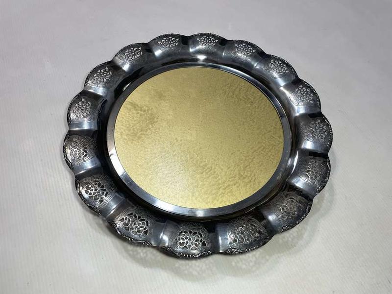 Размер 36 см, высота 4 см, Поднос в античном стиле, GERMANY, серебро + золото, состояние ОТЛИЧНОЕ!