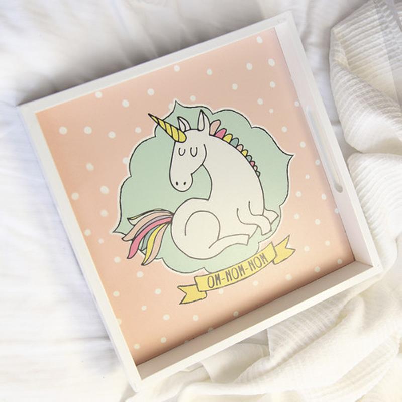 Деревянный поднос с принтом єдинорог