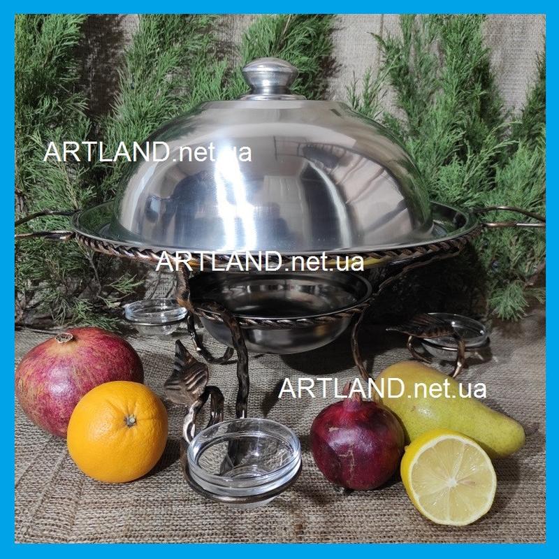 Садж кованый 36 см для подачи шашлыка (полный комплект) - 3 соусницы + колпак (крышка). №1...