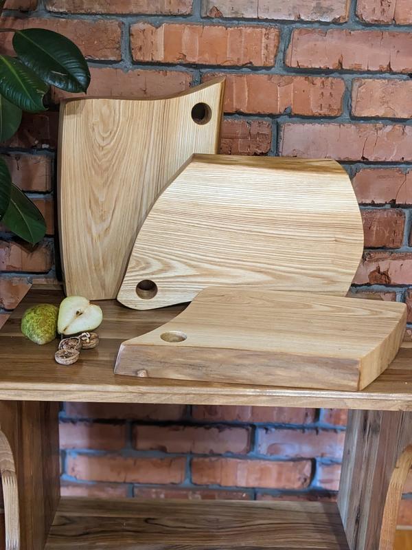 Набор досок для 🥩мяса 🐟рыбы и 🍅овощей. 🪵Материал: ясень 📐Размер: среднем 35×25см 💰Цена:400 грн при 197. Можно заказывать как одну доску так и несколько. Цена в наборе дешевле. Тоже, цена зависит от породы дерева.