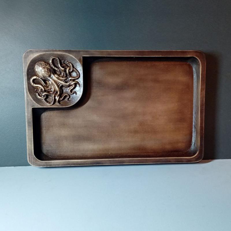 Подчеркните красоту и свежесть ваших блюд с этим великолепным деревянным подносом для суши! Поднос с резным осьминогом -- шедевр на вашем столе! Добавьте нотку оригинальности вашему интерьеру и праздничному столу с этим неповторимым деревянным подносом ручной работы! Изготовлен из натурального дерева и инкрустирован резным осьминогом, этот поднос станет идеальным дополнением к вашему столу. Необычный дизайн с морской тематикой превнесет нотку новизны, украсив любой праздничный стол. Размер подноса может варьироваться в зависимости от ваших пожеланий, что позволит разместить на нем как большие, так ми маленькие порции суш, сашими или другие деликатесы. Выемки по контуру края удерживают соусы и предотвращают падение роллов. Этот поднос станет отличным подарком для ценителей японской кухни или украшением интерьера в стиле фьюжн. Порадуйте себя или близких великолепным ручным изделием, которое прослужит многие годы! Изящный деревянный поднос ручной работы с резным изображением осьминога станет оригинальным дополнением для подачи суши, сашими и других японских деликатесов. ✔️ Натуральное дерево ✔️ Ручная резьба ✔️ Необычный морской дизайн ✔️ Разный размер на выбор ✔️ Идеально подойдет для японской кухни ✶✶✶✶✶✶✶✶✶✶✶✶✶✶✶✶✶✶✶✶✶✶✶✶✶✶✶✶✶✶✶✶✶✶✶✶✶✶✶✶✶✶✶✶✶✶✶✶✶✶✶✶✶✶✶✶✶✶ Резьба по дереву позволяет создавать оригинальные орнаменты и элементы декора, которые в сочетании с высоким качеством исполнения, делают такой товар очень популярным и востребованным. Пропорции доски могут меняться в зависимости от модели и желания заказчика. Если модель на заказ - цена рассчитывается индивидуально. ᅠ Стоимость изделия указана с покраской ᅠᅠ Художественная резьба по дереву отличается высокими эстетическими свойствами. Приятная рельефность поверхности, изысканность мельчайших деталей, необычный сюжет и сам материал, делают наши резные доски необычайно красивыми. Всем изделиям, представленным в каталоге данной категории, свойственна натуральность и естественность. Для работы используются экологически чистый и безопасный материал. ᅠ 🏭У нас собственное производство и мы можем предложить Вам хорошую цену. Наша компания WoodEternal - производитель качественных деревянных изделий и товаров для дома. Cпециалисты WoodEternal знают все тонкости работы с деревом, его свойства и процессы деревообработки. Мы гордимся выпускаемой продукцией, а клиенты могут ее уверенно презентовать своим партнерам, продвигая свой бренд. Наша продукция уникальна, незабываема, премиум - класса. Открыты к сотрудничеству. Мы работаем с украинскими и международными компаниями, которые ценят дерево, качество и современный дизайн. ✶✶✶✶✶✶✶✶✶✶✶✶✶✶✶✶✶✶✶✶✶✶✶✶✶✶✶✶✶✶✶✶✶✶✶✶✶✶✶✶✶✶✶✶✶✶✶✶✶✶✶✶✶✶✶✶✶✶ Несколько советов по уходу за деревянным подносом: 🌿 Используйте подставку. Кладите поднос на мягкую подставку из фетра или замши, чтобы не появлялись царапины на поверхности от контакта с твердыми поверхностями. 🌿 Тщательно вытирайте после использования. Сразу же промокайте влагу, не давайте ей впитываться в дерево - это может привести к деформации подноса со временем. 🌿 Периодически натирайте маслом. Специальные масла для ухода за деревянными изделиями (например, льняное масло) помогут сохранить красот
