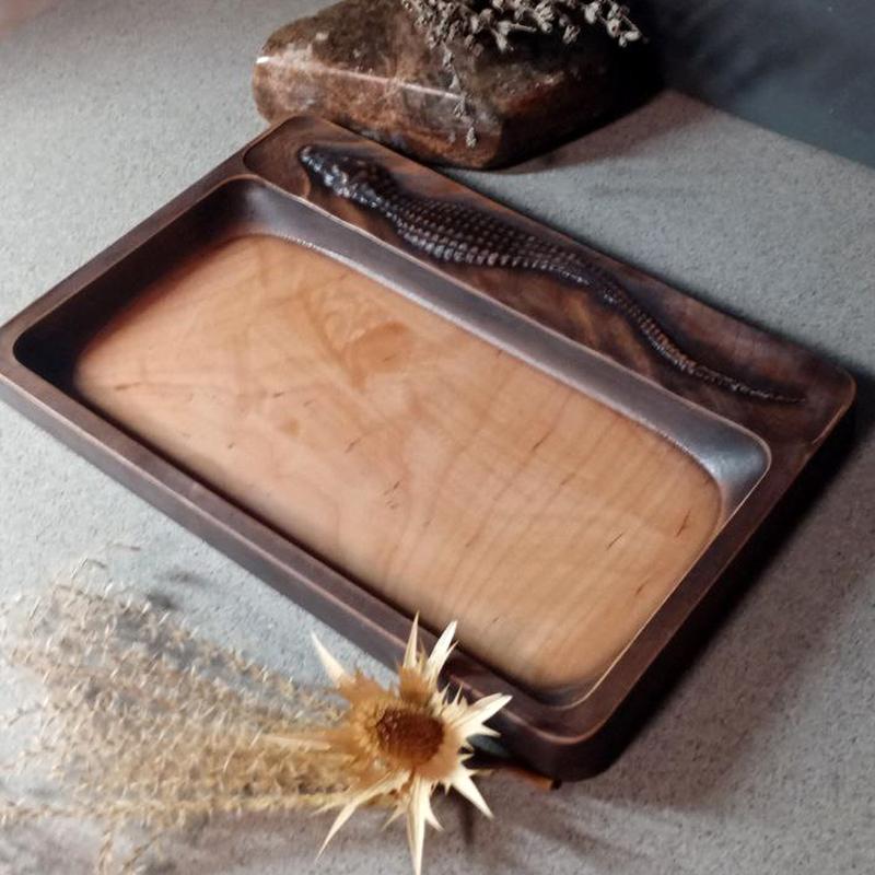 Деревянный поднос для подачи с крокодилом размер 16 х 25 см.