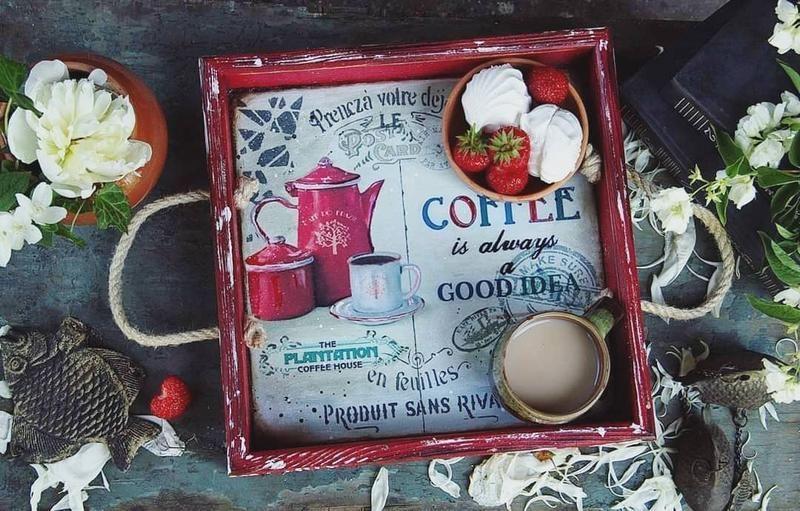 Ударим по красненькому?) Какое кофепитие без подноса? С подносом это ж целая церемония получается, а не просто так) Поднос, размером 30х30 см в наличии. #подарункиукраїна #интерьердома #интерьеркафе #ручнаяработа #щоподарувати #поднослофт #красныйвинтерьере #кухнякрасная #детали #handmade #decoupagem #decoupageart