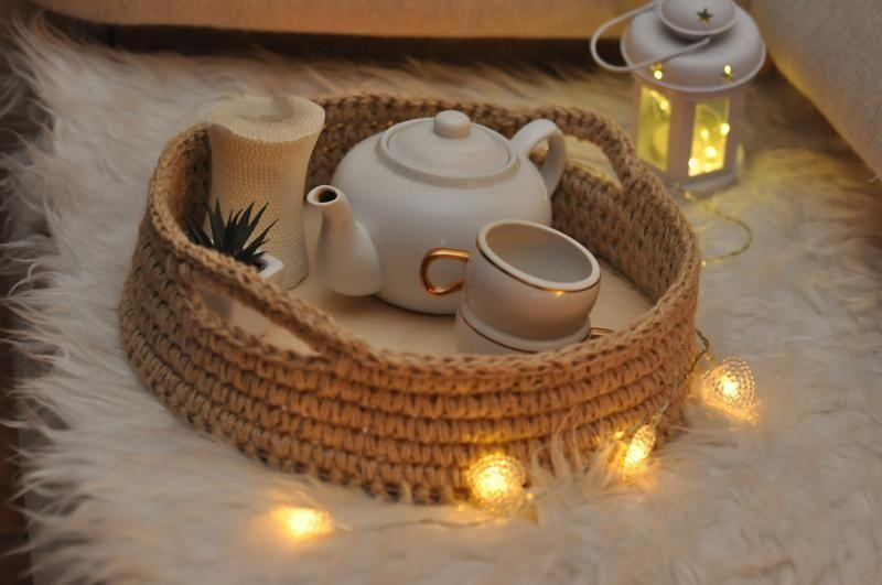 Эко столик-поднос из джута с деревянным дном. поднос для завтрака. столик для завтрака