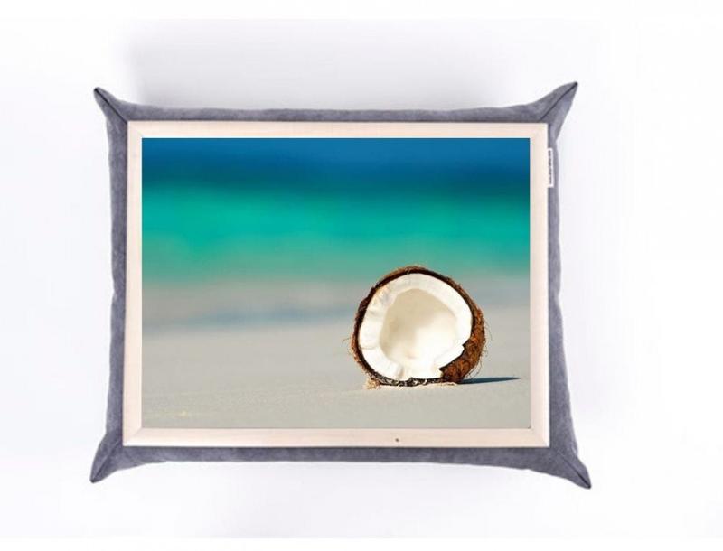Этот столик на подушке можно использовать при работе в постели и на диване, с ним удобно попить кофе и поработать за ноутбуком. Благодаря большой подушке, которая сшита из мягкого вельвета (100% хлопок) и заполнена пенопластовым наполнителем столик можно разместить на любой поверхности под углом для более комфортной работы. Столешница изготовлена ​​из устойчивого и пластического акрила, который не боится деформаций, в отделке с высококачественной древесины. Под столешницей расположен яркий принт, на котором можно разместить ноутбук с диагональю 15,6 дюймов. Хороший подарок на любой праздник. Материал: пластический акрил, дерево, текстиль Размер: 47х37х13см Вес: 990 грамм Уход: рекомендуется удалять пятна методом сухой чистки. Цвет подушки: серый Цвет рамки: бежевый А так же Вы можете заказать этот столик в следующих цветах, сообщим менеджеру: Подушка: хлопковая ткань (вельвет): розовый, бежевый (песочный),темно- коричневый, темно-синий, темно-серый (графит). Рамка: белая, черная, бежевая, коричневая