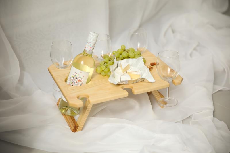 Винний дерев'яний столик кемпінг, оригінальний подарунок, піднос на ніжках з ясена