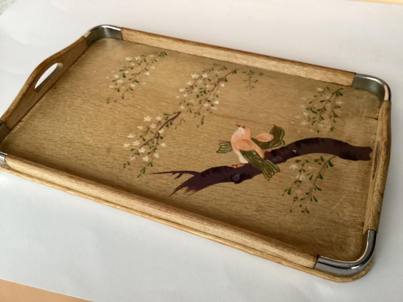 Прекрасный деревянный поднос с ручной росписью! Привезен из Франции! Размер по донышку-40х25 см, высота бортиков-2,3 см. Очень хорошая сохранность, с лёгкими, практически незаметными следами пользования!См.фото!