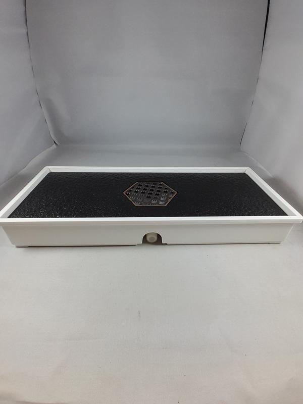 Чайная доска для китайской чайной церемонии. Во-первых, это файно. Именно на чайной доске находится чайник, чаша справедливости, пиалы, а также чайные фигурки. Создает атмосферу. А еще удобно, потому что вся лишняя жидкость стекает в специальный поддон. И мы можем наслаждаться чаепитием, не отвлекаясь на мелочи. Пластиковый поддон, в котором есть отверстие для стока, но это отверстие можно закрыть и не использовать. Верхняя часть также пластиковая, а ажурная шестигранная пластина – металлическая. Не закреплена. Верхняя часть снимается, давая возможность тщательно вытереть поддон и просушить его. Затем вся доска легко складывается снова, потому что ее части красиво подогнаны друг к другу. Размер доски - 27,5см х11,5см Материал - пластик, металл. При подходящем уходе может работать, как наша, до 15 лет)