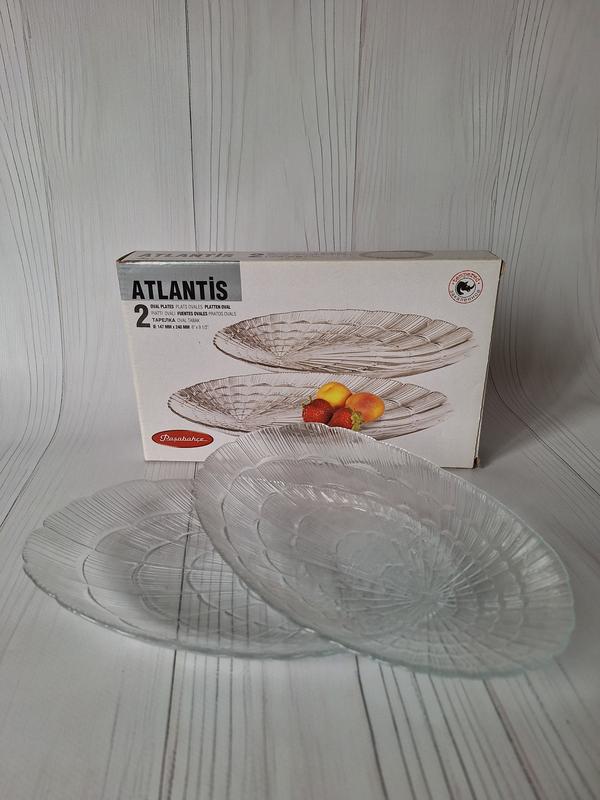 Набор стеклянных овальных блюд Pasabahce Atlantis 24х14см. Высококачественное стекло с объемным орнаментом в виде ракушки. Посуда Pasabahce предназначена для интенсивного использования без потери внешнего вида. Посуду Pasabahce можно мыть в посудомоечной машине. Дополнительное утолщение краев делает их более прочными и устойчивыми к механическому воздействию. Высокое качество, оригинальный дизайн. В наборе 2 блюда. Упакованы в фирменную подарочную коробку. В наличии 2 набора Отправляю Новой Поштой, Укр-бытой. Оплата 100% на карту Приватбанк. Возвращение нет.