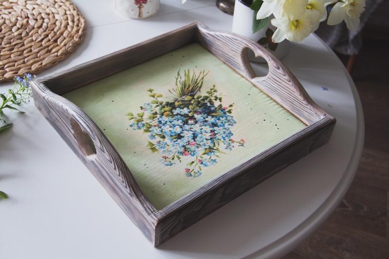 Затишок у кожному ранковому промені, маленькі ніжності природи на зовсім немаленькій таці Розмір 33х33 см В наявності #незабудки #домашнійдекор #декордлядому #таця #поднос #подарункитут #home #homedesign #інтерєр