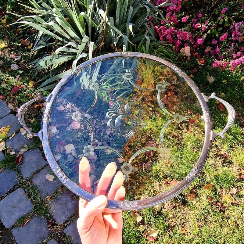 Антикварный поднос, поднос с изысканным узором и гравировкой на хрустале.