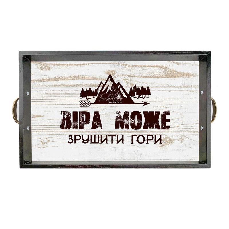 Поднос декоративный деревянный віра може зрушити гори 50х30 з металевими ручками. колір ко...