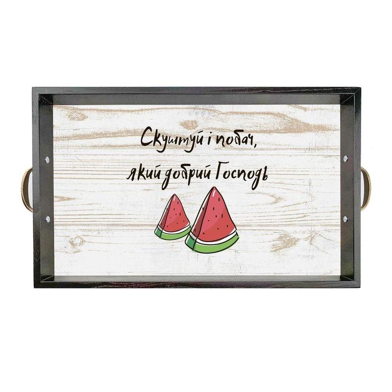 Поднос декоративный деревянный скуштуй і побач 50х30 з металевими ручками. колір коричневи...