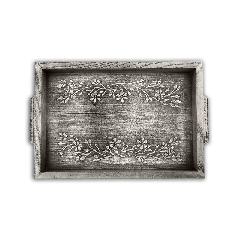 Піднос дерев'яний 20х30 квіти сірий вінтаж хрп0014св