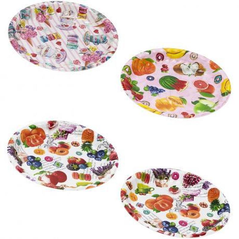 Целостность продукта нужно проверять на почте. Круглый поднос с ярким красивым рисунком. Материал пластик. Размер 36*4см