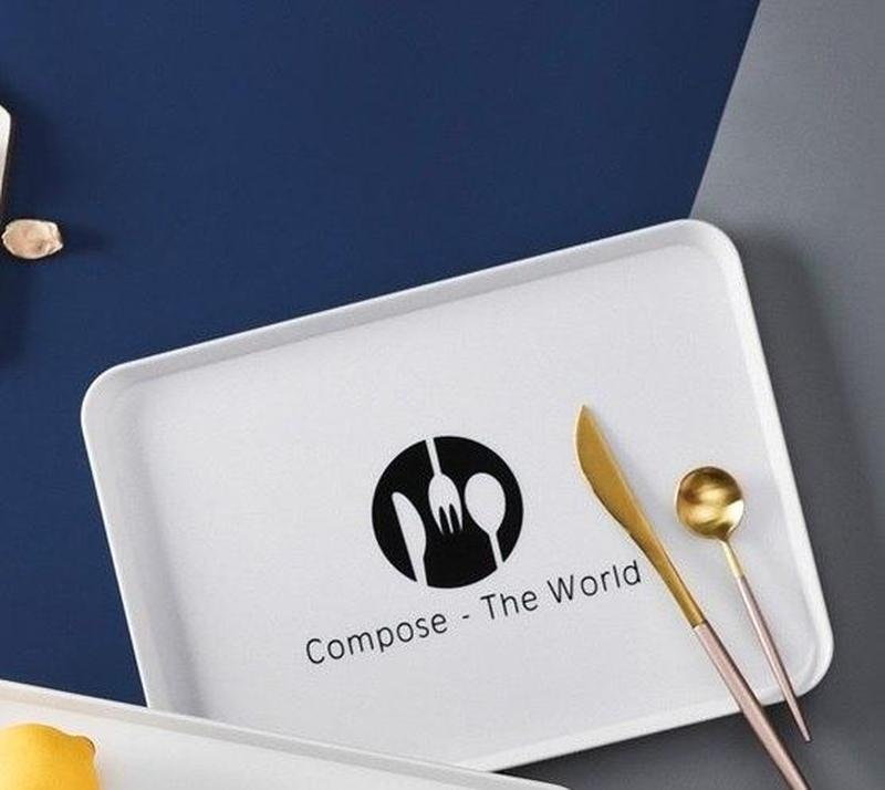 Поднос пластиковый 14423 28х20 см белый с вилкой и ложкой