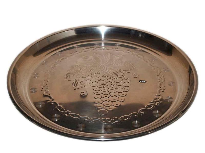 Удобный размер и приятный дизайн делают поднос незаменимым аксессуаром для семейных завтраков и дружеских вечеринок. Материал: нержавеющая сталь Диаметр: 50 см. Особенности: имеет полированную поверхность, которая обладает защитными свойствами и легко чистится.