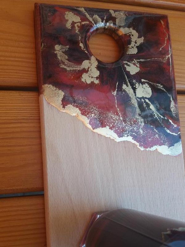 Разделочная доска с декором из эпоксидной смолы. Доску можно использовать для подачи блюд, обратная сторона полностью рабочая - можно использовать для нарезки.