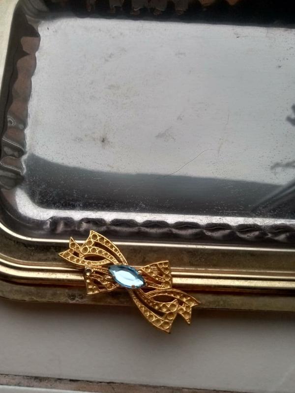 маленький поднос, металлический. с бантом в хорошем состоянии, дефекти видно на фото