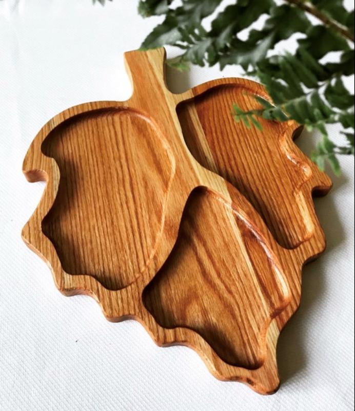 Доска для подачи блюд менажница "листок" 37х30см (дерев'яна тарілка)