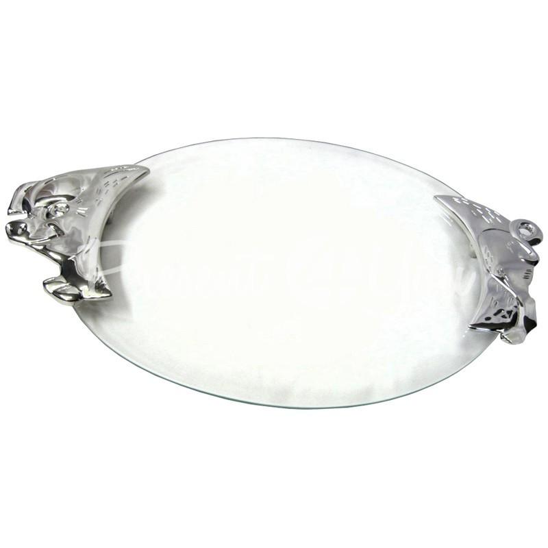 Поднос «Свинка» 43,5x27,5 см. изготовлен из металла и стекла. Благодаря интересной форме, блюдо-поднос создаст торжественную атмосферу при сервировке стола. Горячие блюда из птицы, рыбы, дичи в соусе, а также отварные и припущенные блюда, представленные на этом блюде будут выглядеть намного вкуснее и интересней.