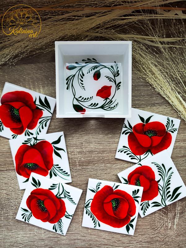 Подставки под чашки ручной работы по заказу Срок изготовления- 2-3 недели Размер 9x9 см Покрыты эпоксидной смолой, защищающей рисунок от истирания и влаги. Цена за 1 шт. - 100 грн Подставка - 150 грн Комплект, как на фото - 750 грн Рисую по заказу ************************************************************
