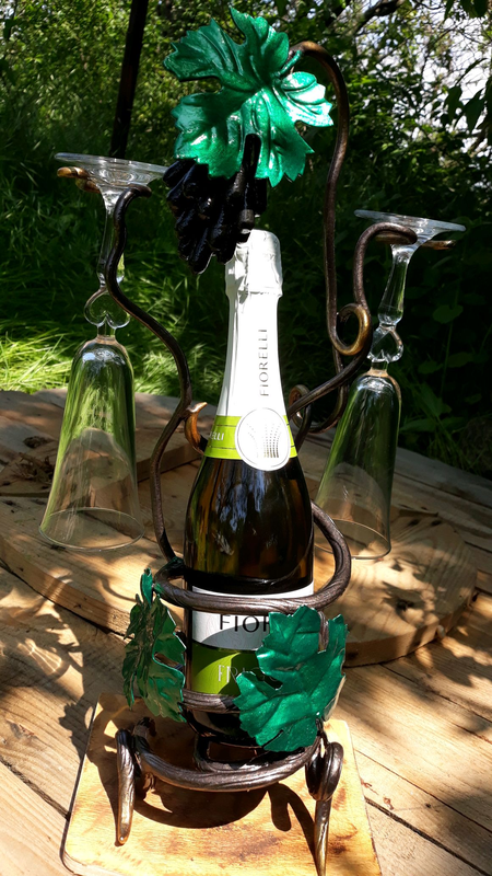 Тип посуду: Інший тип посуду Підставка під пляшку виконана з 10-го прутка,закрученого в виноградну лозу,та пруток 6мм зроблені тримачі для бокалів.Прогрунтовано,та пофарбовано темно-коричневою молотковою фарбою.В данну підставку входять як шампанське так і вино.Ціна підставки 900 без бокалів та пляшки.Див.інші мої оголошення.