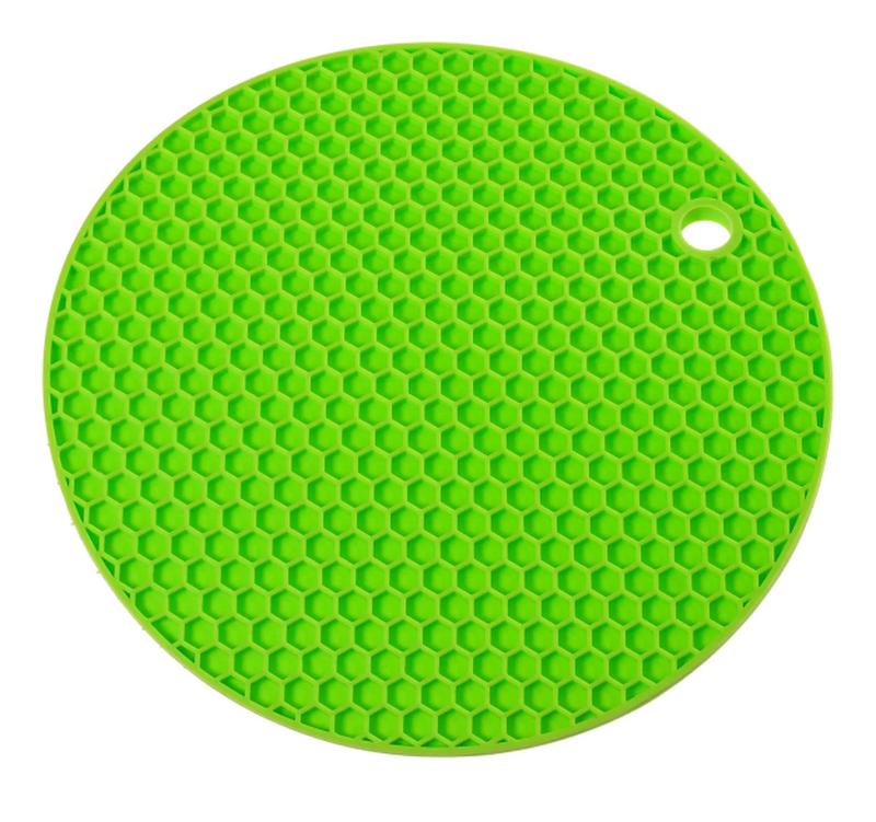 Многофункциональный силиконовый нескользящий термостойкий коврик подставка 18 х 0.55 см Разные цвета Стильная и многофункциональная прихватка из термостойкого силикона станет ярким дополнением вашей кухни! Она гораздо более практичная и современная, чем привычные мягкие прихватки и тряпочки. Универсальная прихватка и подставка Этот аксессуар может использоваться как в качестве прихватки, так и подставки под горячее. Прочная и жаростойкая прихватка надежно защитит руки от ожогов, а термостойкая подставка позволит разместить на любой поверхности горячие сковородки, кастрюли, противни и многое другое. Рифленый силикон Силиконовая прихватка подставка очень удобна в использовании. Благодаря рифленой поверхности она плотно прилегает к любому покрытию и не скользит. К ней не пристает жир и масло, а любые загрязнения легко смываются теплой водой. Под цветочные горшочки Может использоваться как индивидуальная подставка под тарелку с горячим. Это особенно актуально, если стол имеет чувствительную к высоким температурам поверхность - теперь вы забудете о следах от тарелок! Также силиконовые подставки очень удобны в качестве ковриков под цветочные горшки. Удобное хранение Прихватка компактна и не займет много места в кухонном ящичке, а благодаря отверстию ее можно повесить рядом с другими кухонными предметами и освободить поверхность для готовки. Характеристики: Материал: силикон; Размеры: 18х0,5 см; Цвет: салатовый; Вес: 75 г. Дополнительные характеристики: Тип товара: подставки и прихватки для посуды; Производитель: Китай; Упаковка: пакет; Размеры в упаковке: 18х0,5 см; Вес в упаковке: 75 г.